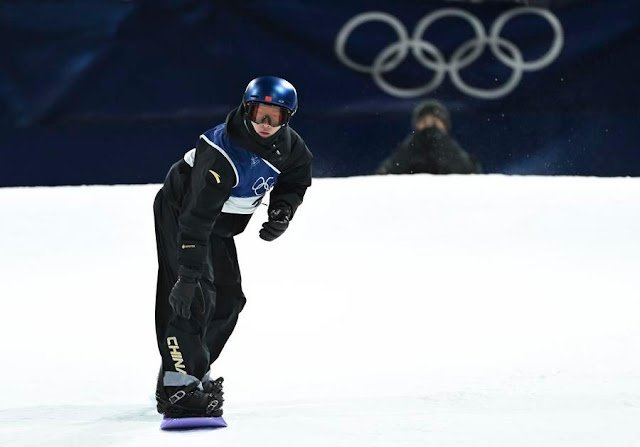 Su Yiming, da China, em ação durante a qualificação de snowboard big air masculino dos…